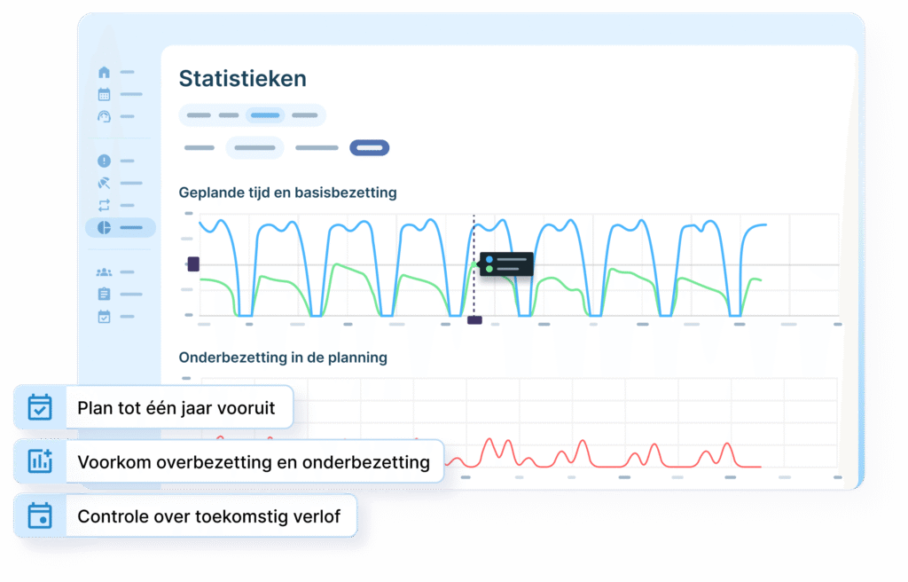 Let Teamlead automatically create a staffing schedule based on required capacity. Teamlead immediately indicates on which days and times capacity is too low to achieve the service level.